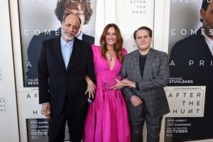 (L-R) Directorproducer Luca Guadagnino, Julia Roberts and Michael Stuhlbarg seen at the Los Angeles Premiere of Amazon MGM Studios’ After The Hunt