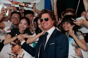 Tom Cruise poses with fans